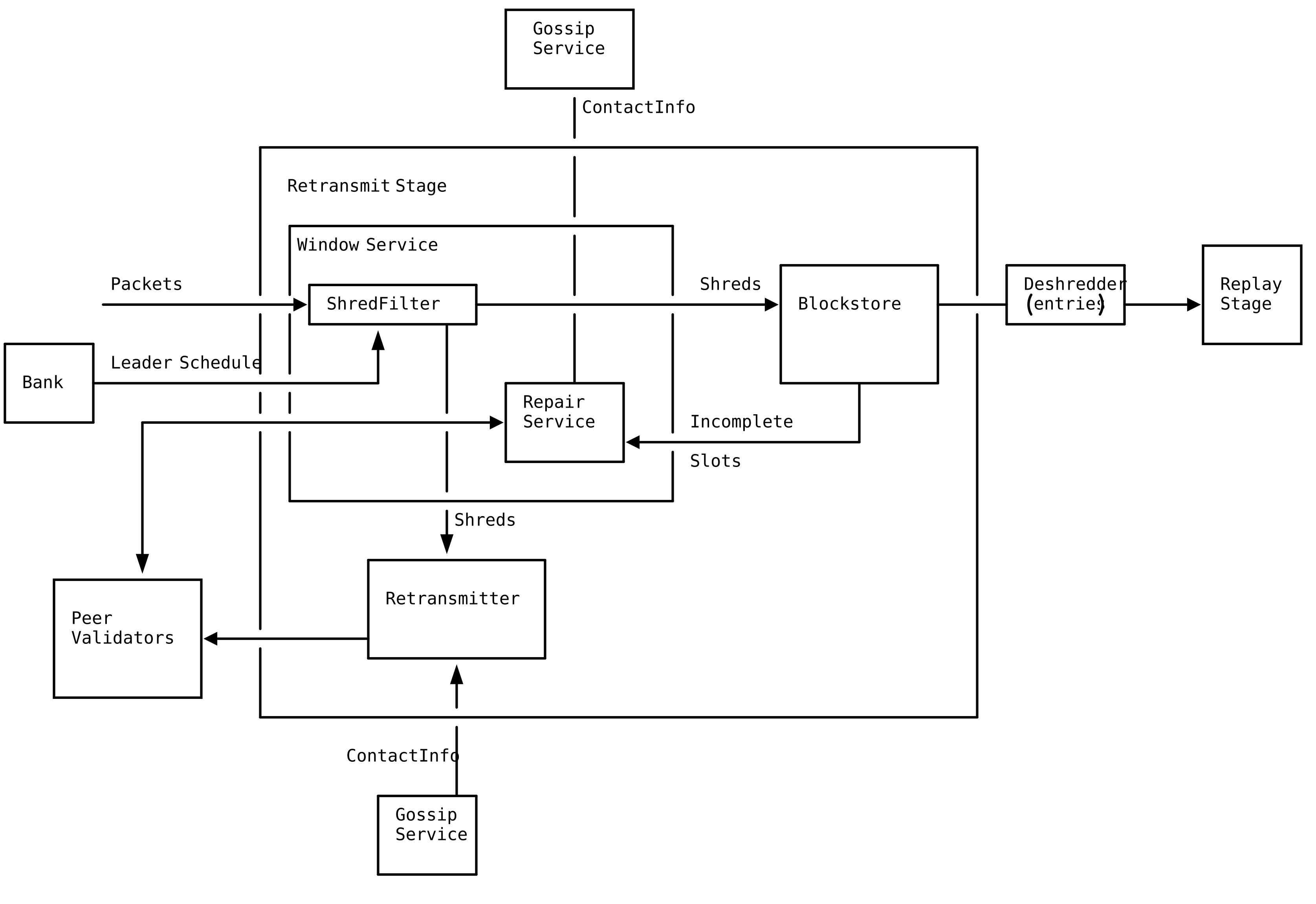 The TVU is the logic of the validator that is responsible for validating, propagating blocks and processing those blocks’ transactions through the runtime. As mentioned earlier, it operates on non-leader validator nodes mainly to reconstruct and validate blocks. In the TVU, data packets are also processed in multi-threaded stages before finalized. It includes pipelined stages such as the retransmit stage, shred fetch stage, signature verification and replay stage.